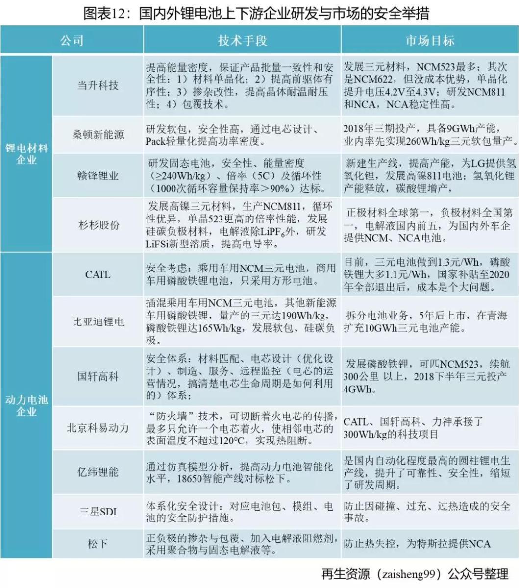 鋰電池上下游企業(yè)有關(guān)安全的技術(shù)研發(fā)對比