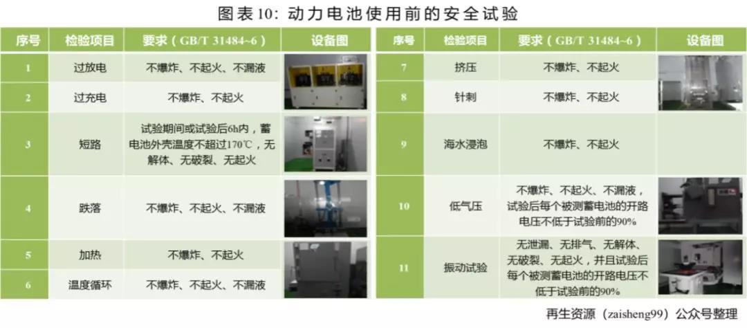 電池的結(jié)構(gòu)設(shè)計,管理系統(tǒng)的優(yōu)化為安全性提供保障,如發(fā)展高靈敏性的熱控制技術(shù)(PTC熱敏電阻),頂蓋設(shè)有安全閥(出氣孔)等。每個商業(yè)化的動力電池進(jìn)入市場前都必須經(jīng)過嚴(yán)格的質(zhì)量檢驗,常見的檢驗方法、標(biāo)準(zhǔn)及檢驗設(shè)備如表10所列。