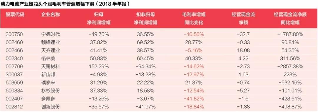 瘋狂的寧德時代產(chǎn)業(yè)鏈急速擴容,然而盈利隱憂帶來的風險也在膨脹。根據(jù)數(shù)據(jù)統(tǒng)計,10家動力電池產(chǎn)業(yè)鏈各環(huán)節(jié)的龍頭公司中,有7家的毛利率都出現(xiàn)了下滑。