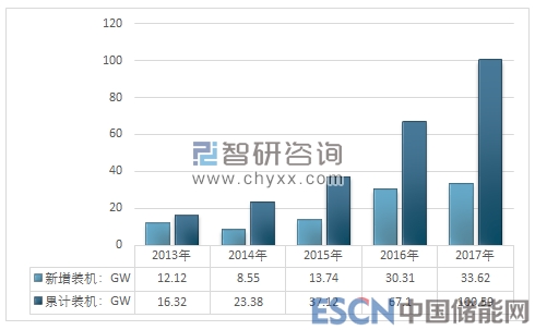 2013-2017年我國(guó)光伏新增統(tǒng)計(jì)