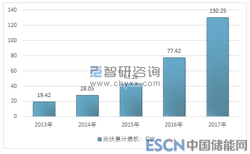 2013-2017年我國(guó)光伏累計(jì)裝機(jī)容量統(tǒng)計(jì)