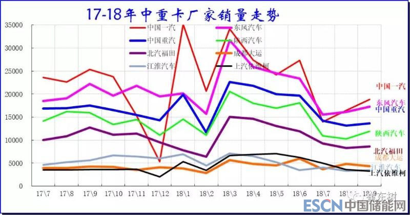 18年3-6月的中重卡基本都是同比17年高增長(zhǎng)的狀態(tài),主力車企相對(duì)較好。今年7-9月的主力走勢(shì)分化,一汽9月走勢(shì)超強(qiáng),重汽走勢(shì)較穩(wěn)。