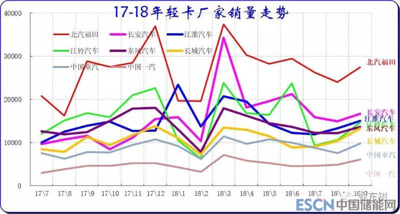 18年9月的輕卡主力廠家分化較明顯,福田和長(zhǎng)安走勢(shì)超強(qiáng),江鈴、江淮、重汽和力帆、及唐駿的輕卡表現(xiàn)較強(qiáng)。主力車企的福田保持超強(qiáng)的龍頭地位。江鈴的銷量表現(xiàn)環(huán)比超強(qiáng)。長(zhǎng)安的輕卡走勢(shì)很強(qiáng),從微卡強(qiáng)勢(shì)企業(yè)升級(jí)成為輕卡第二強(qiáng)勢(shì)企業(yè)。