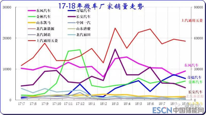 18年的9月的五菱走勢(shì)平穩(wěn)較強(qiáng),而長(zhǎng)安逐級(jí)回落,其他企業(yè)走勢(shì)壓力也較大,但奇瑞等電動(dòng)微客企業(yè)表現(xiàn)較好。