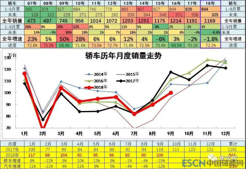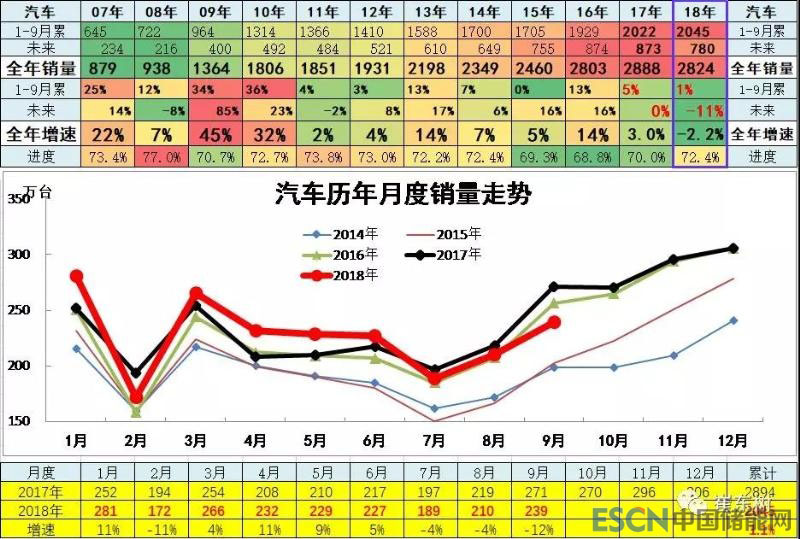中國(guó)儲(chǔ)能網(wǎng)訊:2018年汽車市場(chǎng)總體走勢(shì)壓力較大,各細(xì)分板塊在9月表現(xiàn)都不是很強(qiáng),隨著高基數(shù)的壓力凸顯,4季度的車市增長(zhǎng)也有一定壓力。