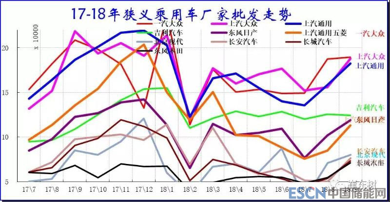 乘用車主力廠家成為三大陣營(yíng),前三甲在18萬左右,中間在12萬水平,后面的在月銷7萬臺(tái)左右。