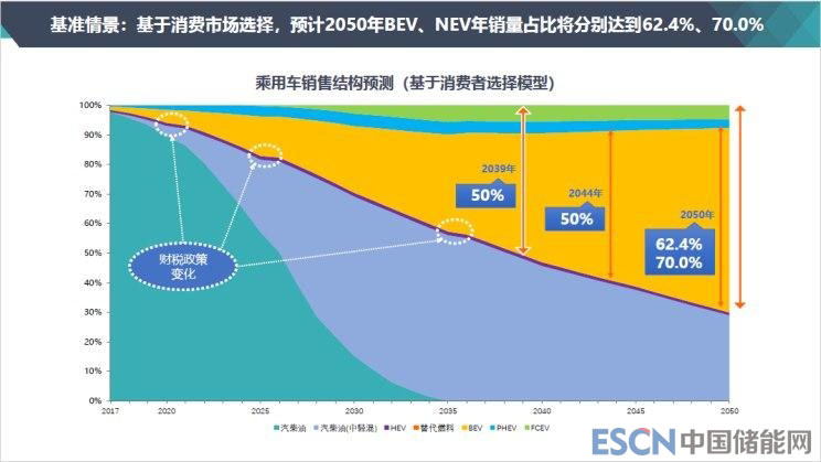 中國儲能網訊:“基于消費市場選擇,預計2050年純電動汽車(BEV)、新能源汽車(NEV)年銷量占比將分別達到62.4%和70%?!?0月16日,在2018節(jié)能與新能源汽車發(fā)展趨勢研討會暨研究成果發(fā)布會上,中國汽車技術研究中心首席專家趙冬昶表示,隨著制造成本和便利性在內的綜合成本全面領先傳統燃油汽車(ICEV),新能源汽車將在2050年成為市場的絕對主流。