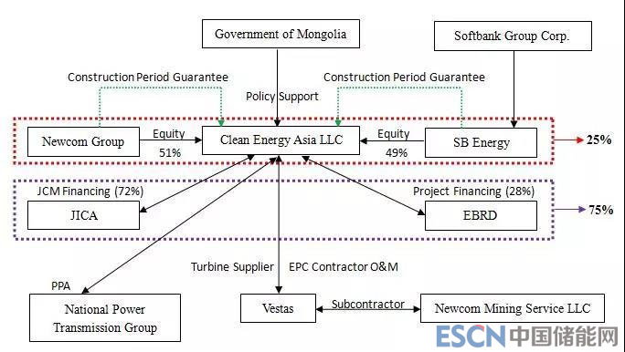 當(dāng)前在蒙古國市場較為活躍的金融機(jī)構(gòu)主要來自歐洲、日本,其中歐洲金融機(jī)構(gòu)主要以EBRD為首的國際多邊組織所牽頭的銀團(tuán)或A/BLoan模式進(jìn)入蒙古國市場,較為活躍的參與行包括FMO、BNP Paribas、INGN.V.、Deutsche Bank等。日本銀行則主要以JICA的優(yōu)惠貸款與商業(yè)銀行貸款相結(jié)合方式推進(jìn)項(xiàng)目。融資模式均為有限追索或無追索項(xiàng)目融資。一方面,項(xiàng)目SPV的出資人最大程度上兼顧了本地影響力與技術(shù)實(shí)力。如Tsetsii風(fēng)電站項(xiàng)目的出資人就包括蒙古國清潔能源領(lǐng)域的龍頭Newcom集團(tuán)與日本軟銀的能源投資公司。