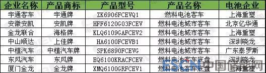 本批新車公示中申報(bào)的7款燃料電池車均為燃料電池客車,包括5款燃料電池客車,2款燃料電池客車底盤,生產(chǎn)企業(yè)分別是宇通、安凱、金龍聯(lián)合、中山順達(dá)、中植、東風(fēng)、廈門金龍。配套電池企業(yè)及配套車型款數(shù)分別為上海重塑配套3款車型、深圳曉龍新能源配套2款車型、北京億華通和廣東泰羅斯分別配套1款車型。
