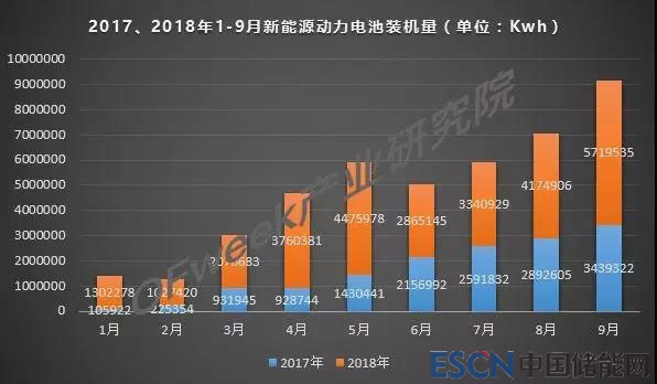OFweek產(chǎn)業(yè)研究院分析數(shù)據(jù)顯示,2018年9月,我國新能源汽車動(dòng)力電池裝機(jī)量約5.72Gwh,環(huán)比增長36.99%,增長速度為5月以來最高,同比增長66.30%,2018年1-9月累計(jì)裝機(jī)量約為28.74Gwh。