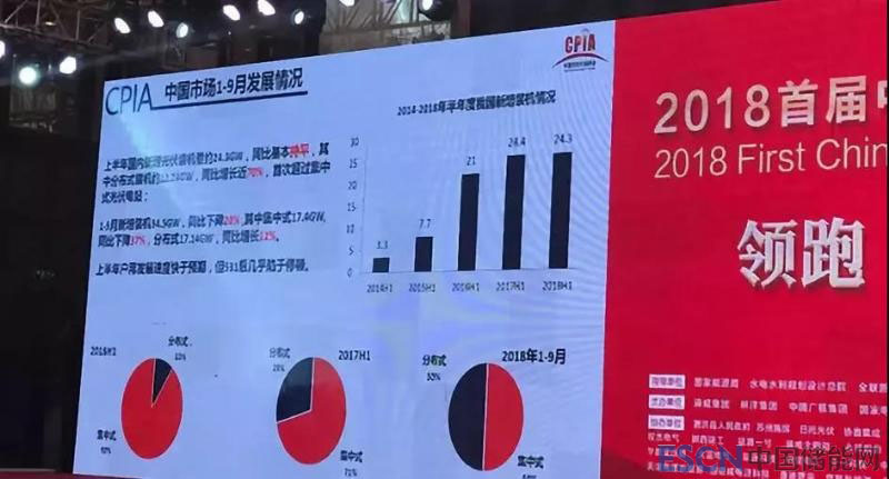 2018年1-9月,我國(guó)光伏新增裝機(jī)34.5GW,同比下降20%,其中集中式17.4GW,同比下降37%,分布式17.14GW,同比增長(zhǎng)12%。