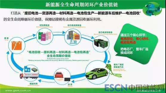 遵循上述兩個生產(chǎn)管理理念的前提下,格林美自2015年開始提出了一個新思路,就是從動力電池回收開始要打造新能源全生命周期價值鏈(詳見下圖),保障鈷鎳稀有金屬資源回收循環(huán)利用。