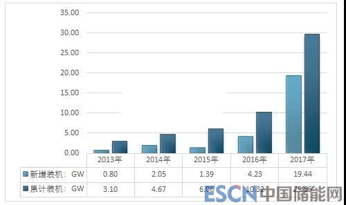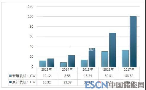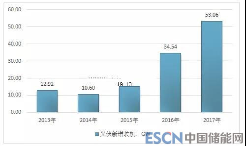 2013-2017年我國(guó)光伏新增統(tǒng)計(jì)