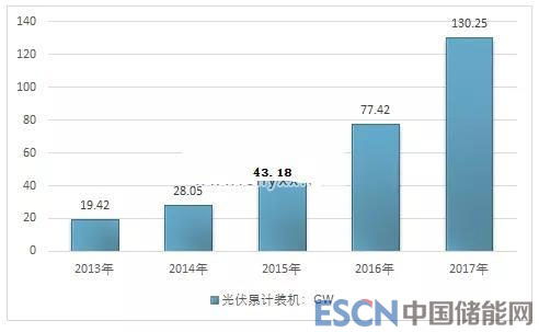 截至2017年底,中國(guó)光伏發(fā)電累計(jì)裝機(jī)達(dá)到了130.25GW,而此前太陽(yáng)能“十三五”規(guī)劃的目標(biāo)僅105GW,已經(jīng)提前并超額完成了“十三五規(guī)劃目標(biāo)”。按照目前的發(fā)展趨勢(shì)來(lái)看,預(yù)計(jì)到2020年底,中國(guó)光伏發(fā)電累計(jì)裝機(jī)將有望達(dá)到250GW。