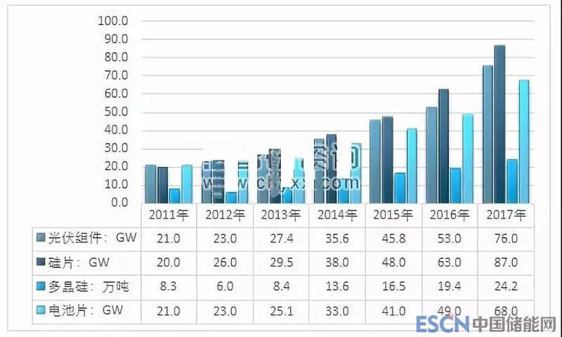 2011-2017年我國(guó)光伏產(chǎn)業(yè)主要產(chǎn)品產(chǎn)量統(tǒng)計(jì)