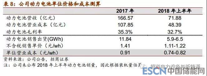 銷量方面,公司中報(bào)披露庫存商品和發(fā)出商品分別為10.5和22.4億元,按照我們預(yù)計(jì)的上半年平均不含稅單價(jià)(1.1-1.2元/wh)折算的庫存和發(fā)出商品合計(jì)約2.7-3GWh,預(yù)計(jì)這部分銷售確認(rèn)在Q3。