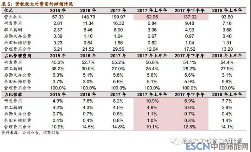2.成本控制力強(qiáng),收入放量攤薄費(fèi)用顯著提升盈利水平:2017年,公司上、下半年毛利率分別37.5%、35.7%,三費(fèi)率分別為24.2%、16.6%,下半年毛利率有所下滑,但收入放大后管理費(fèi)用率顯著攤薄下滑6.3個(gè)百分點(diǎn)至12.8%(其中研發(fā)費(fèi)用約16億,占比管理費(fèi)用約54%,分拆到上下半年,研發(fā)費(fèi)用分別為6.8和9.2億元),因此2017年上下半年扣非凈利潤率分別為8.1%和13.6%。我們判斷,季節(jié)特點(diǎn)造成的費(fèi)用率擾動(dòng),以及對(duì)盈利能力的類似影響在今年仍有體現(xiàn),上半年公司凈利潤率7.x%,下半年可能回升到10-11%。