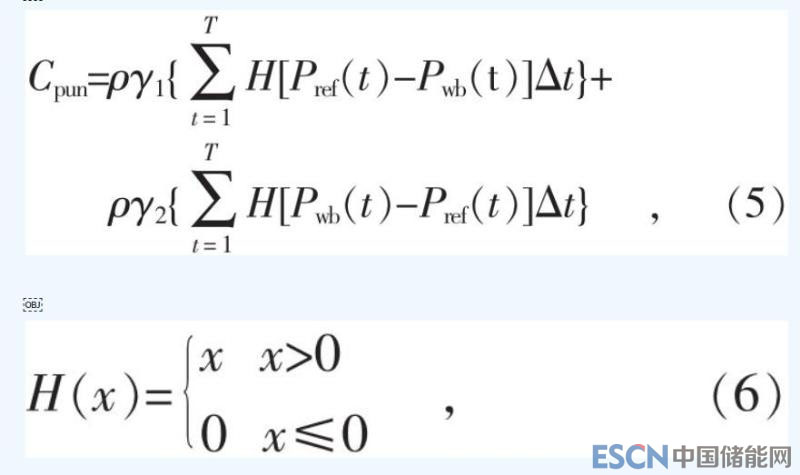 本文考慮風(fēng)儲聯(lián)合系統(tǒng)按照跟隨計劃出力的調(diào)控模式運(yùn)行,在實(shí)際運(yùn)行過程中,受風(fēng)電出力的波動以及儲能容量的限制,可能造成風(fēng)儲聯(lián)合系統(tǒng)無法滿足跟蹤計劃出力的要求。懲罰成本包括缺電懲罰成本和棄風(fēng)懲罰成本,可表示為: