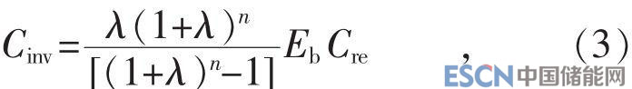 式中:Eb為儲能電池容量;Cre為單位儲能容量成本;n為設(shè)備的使用年限;λ為年利率。