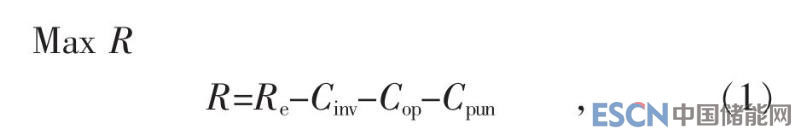式中:R為風(fēng)儲聯(lián)合系統(tǒng)的年收益;Re為年售電收益;Cinv為折算至等年值的儲能系統(tǒng)初始投資成本;Cop為年運(yùn)行維護(hù)成本;Cpun為聯(lián)合系統(tǒng)出力的懲罰成本。