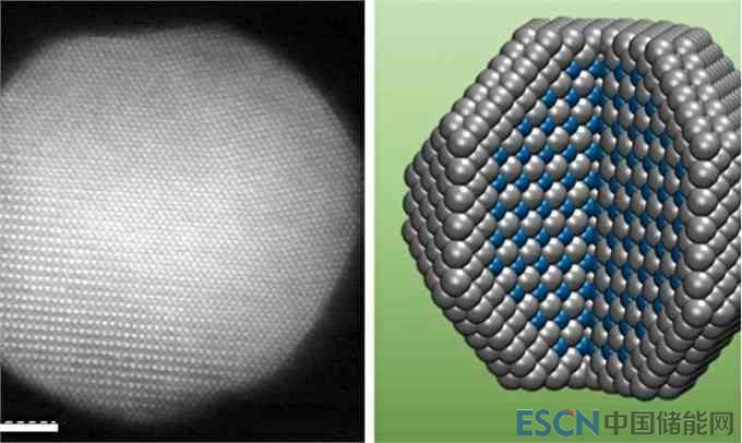 這些粒子有一個(gè)純鉑外殼,圍繞著一個(gè)由鉑和鈷原子交替層構(gòu)成的核心。
