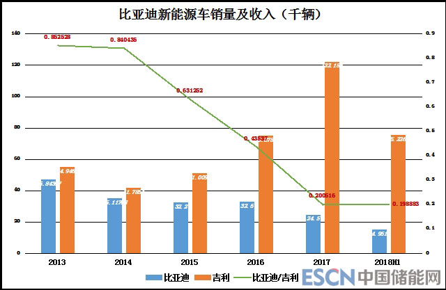 北汽雖已借殼上市,但離開本地政府的“保護(hù)傘”難有太大作為,對(duì)比亞迪新能源車霸主地位構(gòu)成威脅的其實(shí)是吉利。盡管2017年吉利新能源車銷量?jī)H為2.5萬(wàn)輛,不及比亞迪的零頭。早在2015年11月,吉利就啟動(dòng)了“藍(lán)色吉利行動(dòng)”,宣布2020年前能源車銷量占比達(dá)到90%或以上。實(shí)際上2017年、2018年H1,新能源車在吉利銷量只的占比分別為2%和1.9%,與“90%或以上”天差地遠(yuǎn)。