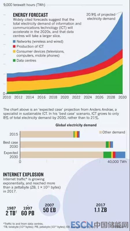 在瑞典的華為從事可持續(xù)ICT工作的Anders Andrae預(yù)測(cè),到2030年數(shù)據(jù)中心的用電量可能會(huì)增加15倍,達(dá)到預(yù)計(jì)全球需求量的8%,但是這個(gè)可怕的數(shù)字是有爭(zhēng)議的。