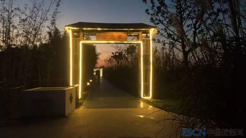 當(dāng)天晚上,該項(xiàng)目啟動(dòng)了離網(wǎng)系統(tǒng)投運(yùn)亮燈儀式。白天CIGS薄膜光伏發(fā)電后存儲(chǔ)在梯次利用動(dòng)力電池中,晚上亮燈時(shí),儲(chǔ)能系統(tǒng)中的電釋放出來,草帽論壇、海棠左岸等富有當(dāng)?shù)靥厣慕ㄖ来吸c(diǎn)亮。至此,一場(chǎng)以可再生能源、儲(chǔ)能、能源管理系統(tǒng)為核心應(yīng)用的鄉(xiāng)村能源的升級(jí)和變革正在拉開序幕。