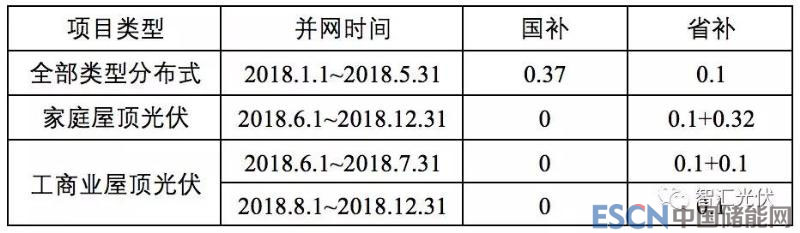 表:光伏新政之后,浙江省分布式光伏項(xiàng)目補(bǔ)貼標(biāo)準(zhǔn)(元/kWh)