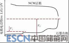 圖8 NCM|石墨鋰離子電池正負(fù)極對(duì)鋰的電極電勢(shì)示意圖