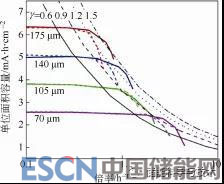圖7 電極厚度與充放電速率間的關(guān)系
