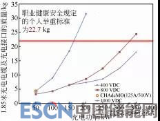 XFC對(duì)電動(dòng)車輛的配套設(shè)備/設(shè)施提出了一系列技術(shù)挑戰(zhàn)(如電纜、高壓電器和連接器等),其中最重要的挑戰(zhàn)是充電樁的類型(如交流、直流,或高壓、低壓)以及與現(xiàn)有設(shè)備/設(shè)施的兼容性,這個(gè)問(wèn)題不僅是個(gè)技術(shù)問(wèn)題,還涉及法規(guī)和標(biāo)準(zhǔn)的統(tǒng)一、以及滿足職業(yè)安全和健康管理等部門的規(guī)定。例如,現(xiàn)有常用充電電壓條件下快速充電的充電槍電纜線會(huì)超過(guò)15 kg/m,圖6顯示隨著功率水平的增加,布線重量明顯增加,會(huì)超過(guò)職業(yè)健康安全規(guī)定的個(gè)人舉重標(biāo)準(zhǔn)。使用更高的電壓可以顯著降低電纜線規(guī)尺寸,但提高電壓,也會(huì)伴隨產(chǎn)生其它問(wèn)題,例如電池組的絕緣安全性、操作防護(hù)等等。當(dāng)然,XFC模式會(huì)改變很多電動(dòng)車相關(guān)的配套設(shè)備/設(shè)施,這里不一一例舉。就目前電動(dòng)車產(chǎn)業(yè)的工業(yè)技術(shù)水平,要實(shí)現(xiàn)XFC還需攻克下述難題:① 研發(fā)先進(jìn)材料或進(jìn)行技術(shù)改進(jìn),使電纜具有更好的熱性能和電性能,以減少設(shè)備/設(shè)施熱管理的熱負(fù)荷;② 研究XFC的自動(dòng)化充電樁;③ 研究適用于輕型乘用車的400 kW功率無(wú)線傳輸技術(shù)。