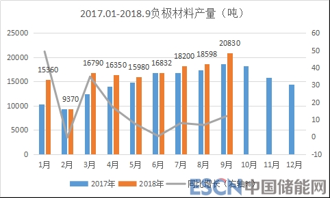 1-9月份負(fù)極材料統(tǒng)計(jì)產(chǎn)量14.83萬(wàn)噸,同比增長(zhǎng)13.6%,需求增長(zhǎng)較為穩(wěn)健;