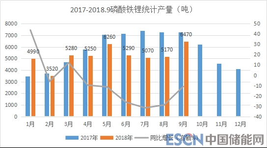 1-9月份磷酸鐵鋰統(tǒng)計(jì)產(chǎn)量4.73萬(wàn)噸,同比下滑12.2%,9月份以來(lái)月產(chǎn)量出現(xiàn)明顯回升;
