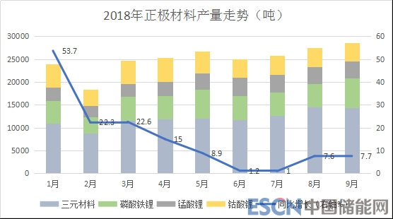 從最新的數(shù)據(jù)來(lái)看,9月份正極材料合計(jì)產(chǎn)量2.86萬(wàn)噸,同比增長(zhǎng)7.7%;其中三元材料市場(chǎng)份額占比達(dá)到50.3%,高于去年同期的41.2%;