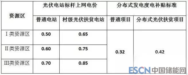 2018年5月31日,國家發(fā)展改革委、財政部、國家能源局聯(lián)合印發(fā)了《關(guān)于2018年光伏發(fā)電有關(guān)事項的通知》。除了暫停發(fā)放普通光伏項目指標(biāo),還將標(biāo)桿上網(wǎng)電價及度電補(bǔ)貼下調(diào)了0.05元/千瓦時。即 5月31日之后,Ⅰ類、Ⅱ類、Ⅲ類資源區(qū)標(biāo)桿上網(wǎng)電價為每千瓦時0.50元、0.60元、0.70元(含稅),分布式補(bǔ)貼0.32元/千瓦時,符合規(guī)定的扶貧項目電價保持不變。