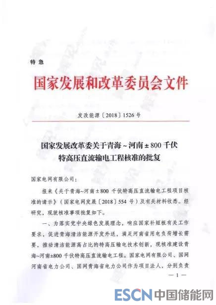 中國儲能網(wǎng)訊:10月23日,國家發(fā)改委正式核準建設青海一河南特高壓直流輸電工程。