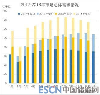 2018年11月份長(zhǎng)協(xié)需求94.57億千瓦時(shí),競(jìng)價(jià)需求41.54億千瓦時(shí),11月份總體需求136.11億千瓦時(shí)。