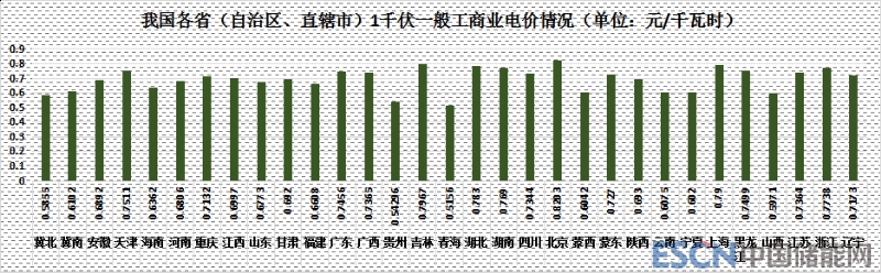 從目前各地執(zhí)行的一般工商業(yè)電價(jià)上看,區(qū)域電價(jià)差依然相對較高,北京、吉林、上海依然是我國一般工商業(yè)電價(jià)最高的地區(qū),山西、冀北、青海相對較低。以不滿1千千伏一般工商業(yè)電價(jià)為例,北京、吉林、上海分別達(dá)到0.8203元/千瓦時(shí)、0.7967元/千瓦時(shí)、0.79元/千瓦時(shí);而山西、冀北、青海則僅為0.5971元/千瓦時(shí)、0.5851元/千瓦時(shí)、0.5156元/千瓦時(shí)。