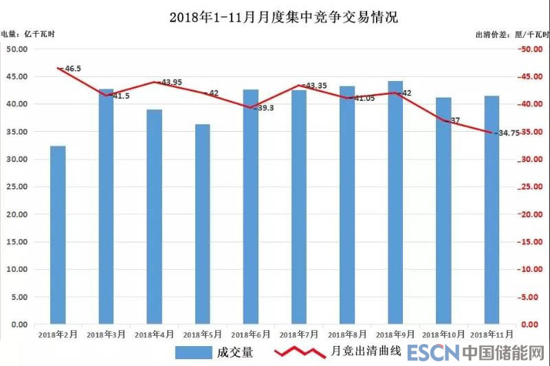 2018年廣東電力市場進(jìn)行了11次月度集中競價(jià),月競出清價(jià)格從4月份開始便有下降趨勢,在11月出清價(jià)差更是刷新今年新低。這11次月度集中競爭交易,總共成交電量為440.96億千瓦時(shí),成交均價(jià)為-40.6厘/千瓦時(shí),遠(yuǎn)比不上2017年月競均價(jià)-68.92厘/千瓦時(shí)。