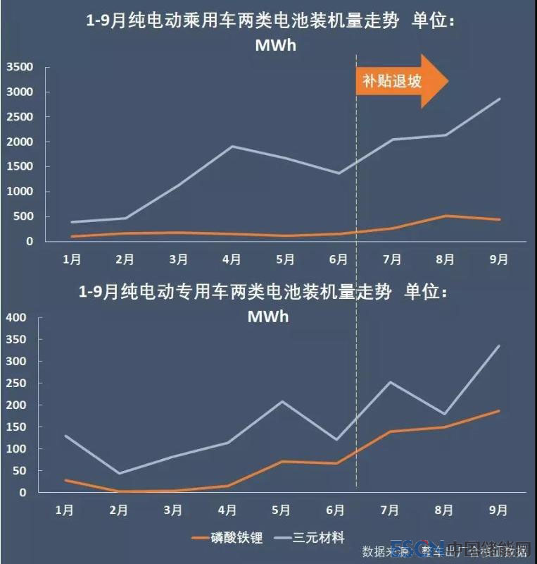事實(shí)上,補(bǔ)貼退坡后三個(gè)月,磷酸鐵鋰電池裝機(jī)上漲勢(shì)頭強(qiáng)于三元鋰電池。