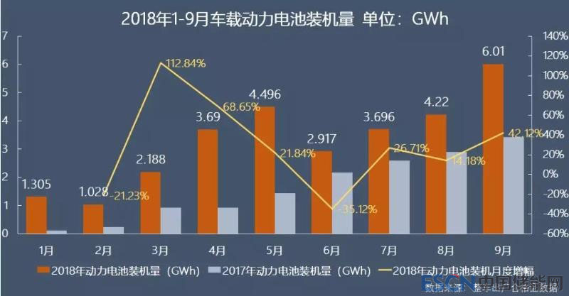 9月份,國(guó)內(nèi)新能源汽車(chē)動(dòng)力電池裝機(jī)量6.01GWh,較上月增長(zhǎng)42.12%,增幅提升明顯;同比亦大幅增長(zhǎng)75.43%,較前兩個(gè)月的增幅繼續(xù)回升。