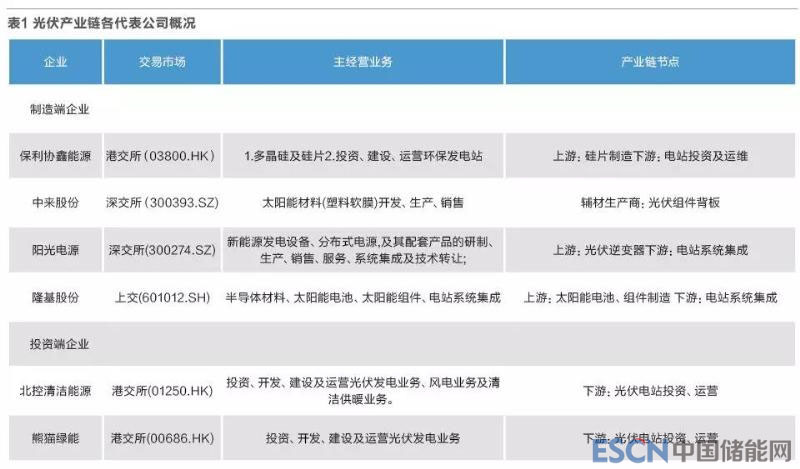 光伏行業(yè)在國(guó)家政策鼓勵(lì)下蓬勃發(fā)展了若干年,如今平價(jià)上網(wǎng)時(shí)代的來(lái)臨,產(chǎn)業(yè)鏈相關(guān)企業(yè)是否可以利用市場(chǎng)的力量獨(dú)立前行?衡量一個(gè)行業(yè)健康程度,需要認(rèn)真審視該行業(yè)產(chǎn)業(yè)鏈關(guān)鍵環(huán)節(jié)的企業(yè)財(cái)務(wù)狀況,本文選擇產(chǎn)業(yè)鏈中的代表性企業(yè)(表1)——投資商、硅片制造商、組件制造商、逆變器制造商和輔材制造商,從各相關(guān)企業(yè)的利潤(rùn)質(zhì)量、現(xiàn)金流質(zhì)量、資產(chǎn)質(zhì)量和資本結(jié)構(gòu)四個(gè)方面綜合分析其財(cái)務(wù)的健康程度。