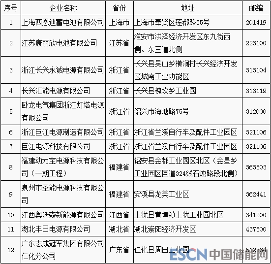 中國(guó)儲(chǔ)能網(wǎng)訊:11月1日,工信部發(fā)布了《符合<鉛蓄電池行業(yè)規(guī)范條件(2015年本)>企業(yè)名單(第五批)》,西恩迪、圣能電源等12家企業(yè)列入,詳情如下: