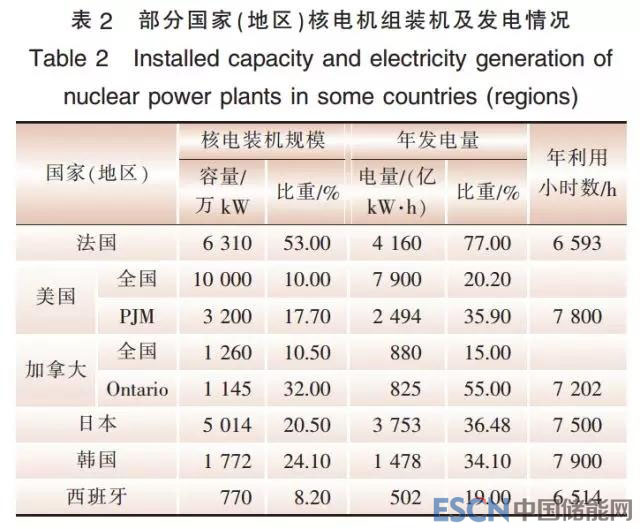 根據(jù)調(diào)研,法國、美國PJM、加拿大Ontario、日本、韓國等國家和地區(qū)的核電裝機(jī)占比均接近或超過20%(詳見表2),發(fā)電量占比在20%~80%。其中,法國核電裝機(jī)占比超過50%,發(fā)電量占比超過70%,機(jī)組頻繁進(jìn)行日調(diào)峰運(yùn)行;美國、德國核電機(jī)組根據(jù)電網(wǎng)需求參與調(diào)峰運(yùn)行;日本、西班牙、韓國等國家和地區(qū)由于具有充足的調(diào)峰電源,電源結(jié)構(gòu)適應(yīng)負(fù)荷特性要求,除在最小負(fù)荷時(shí)段安排檢修外,核電機(jī)組一般保持滿功率運(yùn)行。