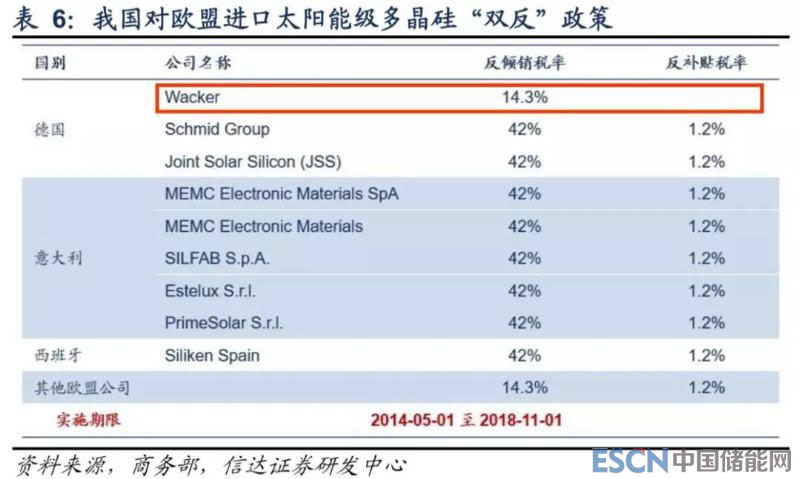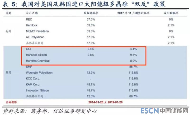 我國自 2012 年啟動對歐、美、韓進口多晶硅“雙反”立案調(diào)查,并于 2014 年做出最終裁定,其中對美韓產(chǎn)品實施期限為 5 年,2017 年 11 月期中復(fù)審提高對韓反傾銷稅率;對歐盟進口產(chǎn)品實施期限為 2 年,后經(jīng)復(fù)審終裁,延長至 2018 年底。從“雙 反”征稅具體企業(yè)來看,我國對 OCI、韓國硅業(yè)(Hankook)、瓦克(Wacker)三大主要進口企業(yè)征收關(guān)稅相對較低,而對美國進口企業(yè)及其余歐洲企業(yè)征收關(guān)稅額度較高,我們接下來對海外多晶硅龍頭企業(yè)進行分析,通過其多晶硅業(yè)務(wù)發(fā)展狀況觀 測未來替代其產(chǎn)能的可能性。