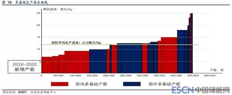四、國內(nèi)多晶硅先進產(chǎn)能位于成本曲線左側(cè),無懼價格下降壓力