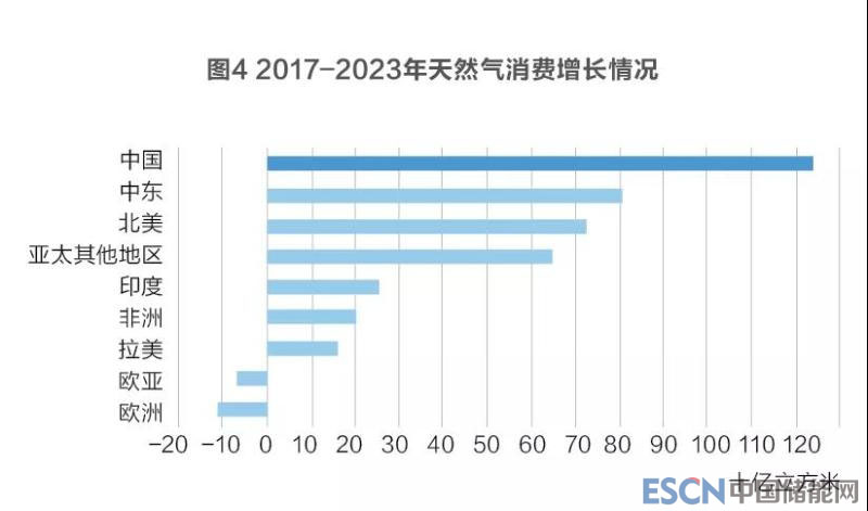 IEA《天然氣市場報告2018》分析指出,中國將主導不斷增長的天然氣需求。預計未來5年全球天然氣需求將平均增長1.6%,而新興亞洲市場將成為需求的主要引擎。由于中國的“藍天”政策和改善空氣質量的動力,僅中國就占到了2022年全球需求增長的三分之一。(見圖4)
