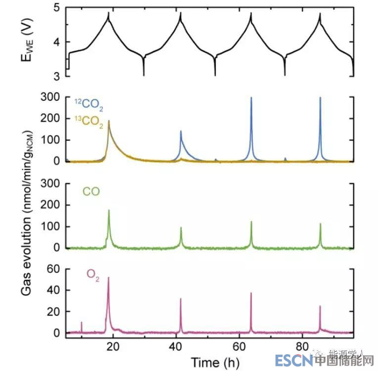 在排除電解液干擾的條件下,NCM中逸出的氧原子是電池中CO2的主要來(lái)源。