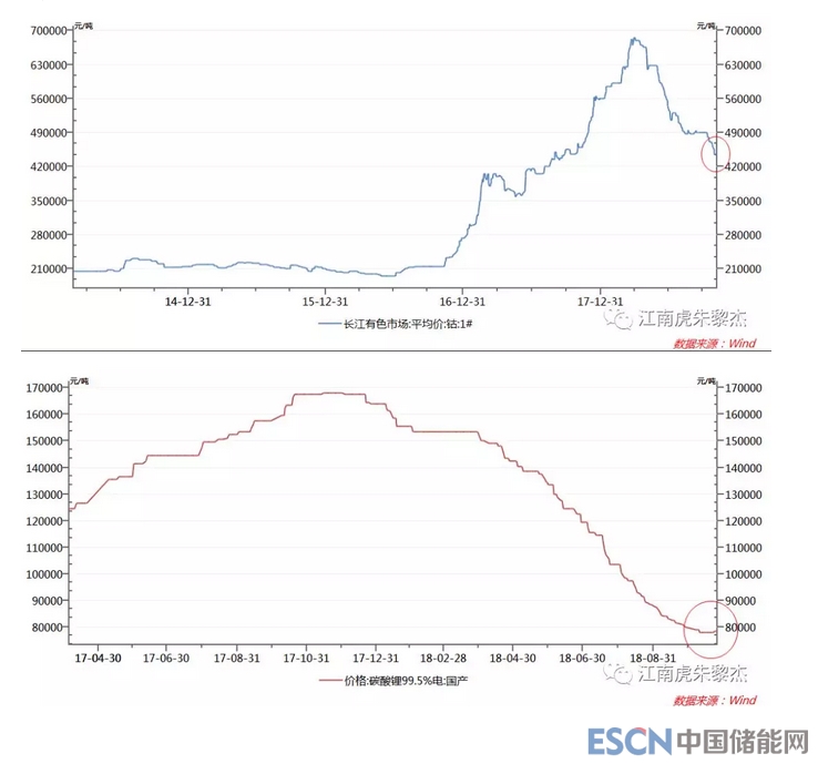 1. 2018年鈷和鋰的下跌都是迅猛的,筆者盡管看對(duì)了方向,但下跌的斜率還是超出了預(yù)期;